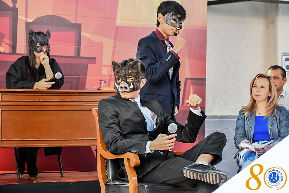 Este año, en el marco de las Jornadas Montessori, el Taller de Teatro del plantel Secundaria presentó “Le procès” una puesta en escena cuya historia, contada a través del uso de herramientas como objetos, música y gráficos, genera una importante reflexión alrededor del tema de la economía mundial y la responsabilidad ambiental.